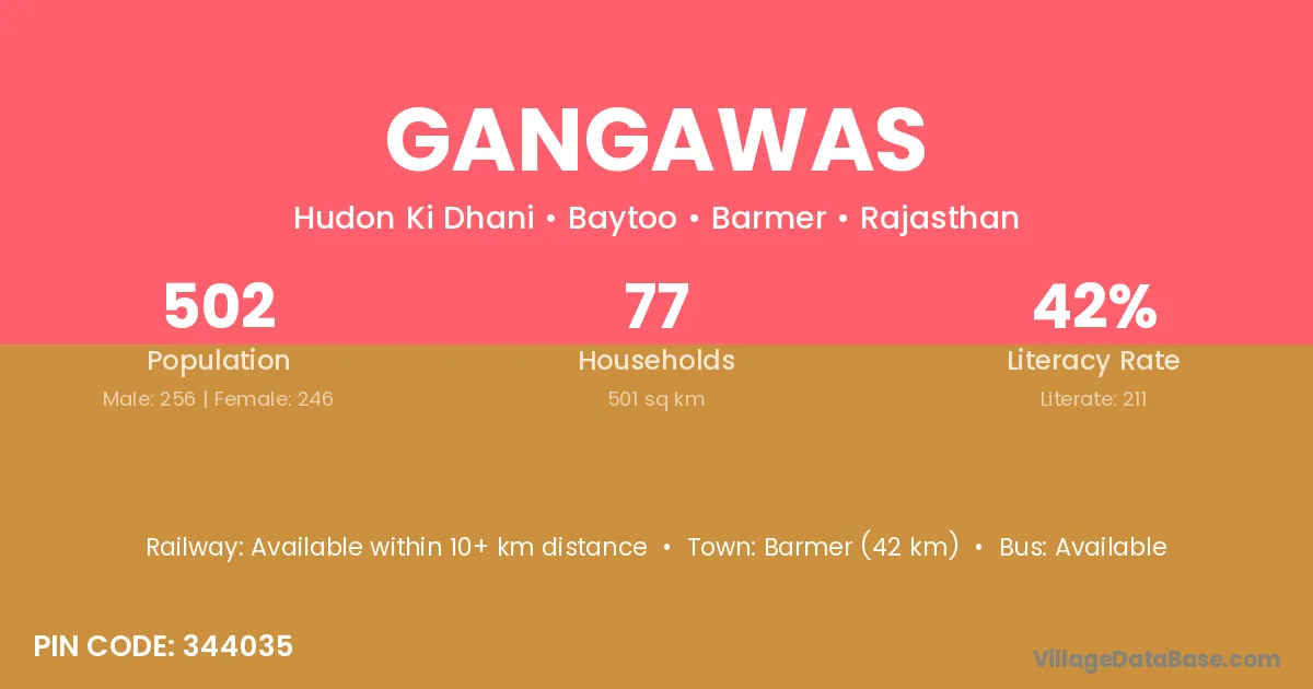 According to Census 2011 information, the village code of Gangawas village is 344026.