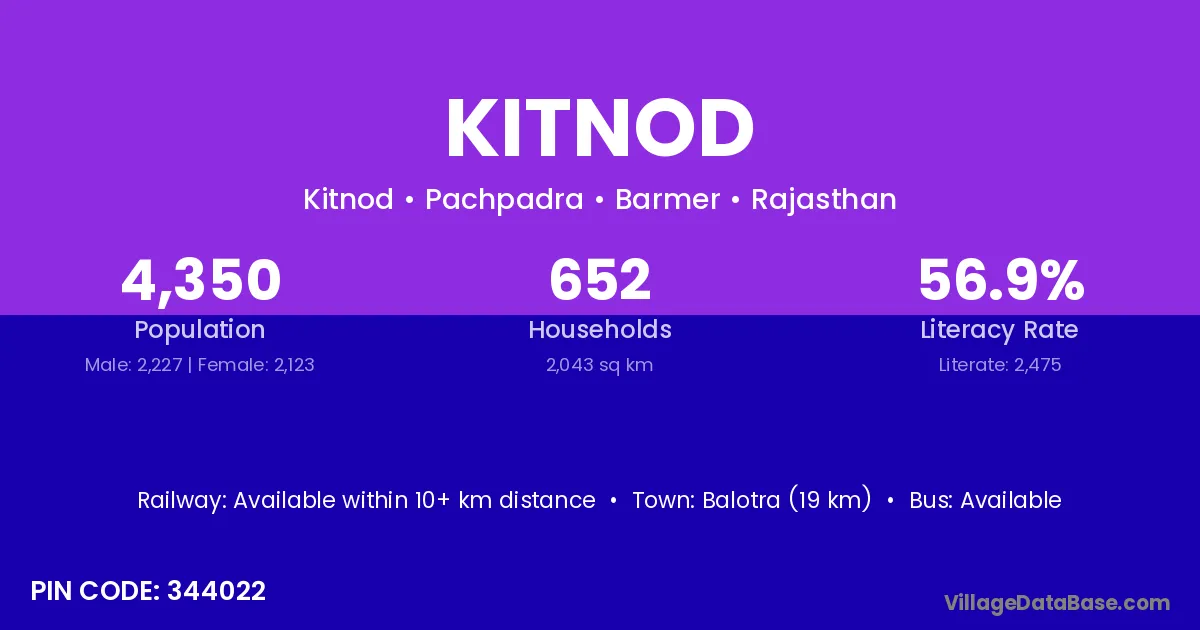 Balotra (19 km) is the nearest town to Kitnod village for major economic activities and is located approximately 19 km away.