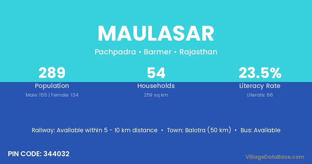 Balotra (50 km) is the nearest town to Maulasar village for major economic activities and is located approximately 50 km away.