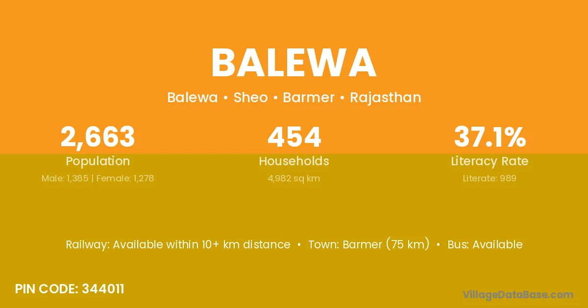 Barmer (75 km) is the nearest town to Balewa village for major economic activities and is located approximately 75 km away.