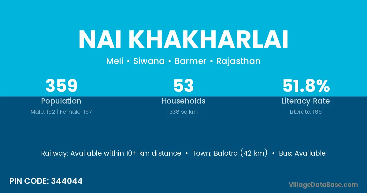 Balotra (42 km) is the nearest town to Nai Khakharlai village for major economic activities and is located approximately 42 km away.