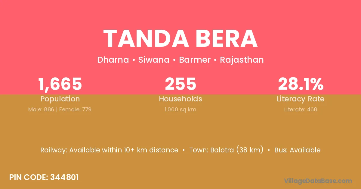 Balotra (38 km) is the nearest town to Tanda Bera village for major economic activities and is located approximately 38 km away.