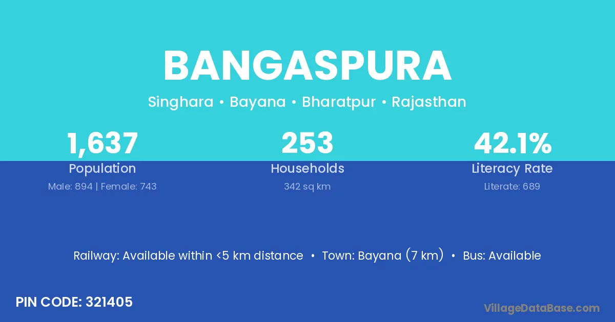 Bayana (7 km) is the nearest town to Bangaspura village for major economic activities and is located approximately 7 km away.