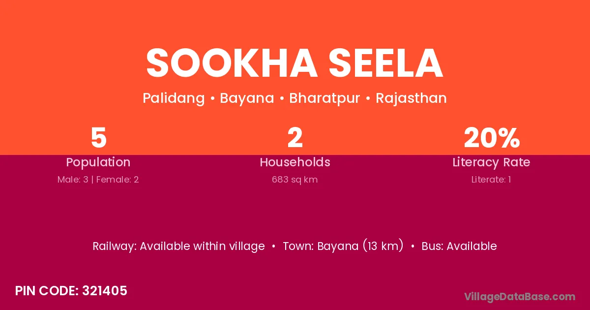 Bayana (13 km) is the nearest town to Sookha Seela village for major economic activities and is located approximately 13 km away.