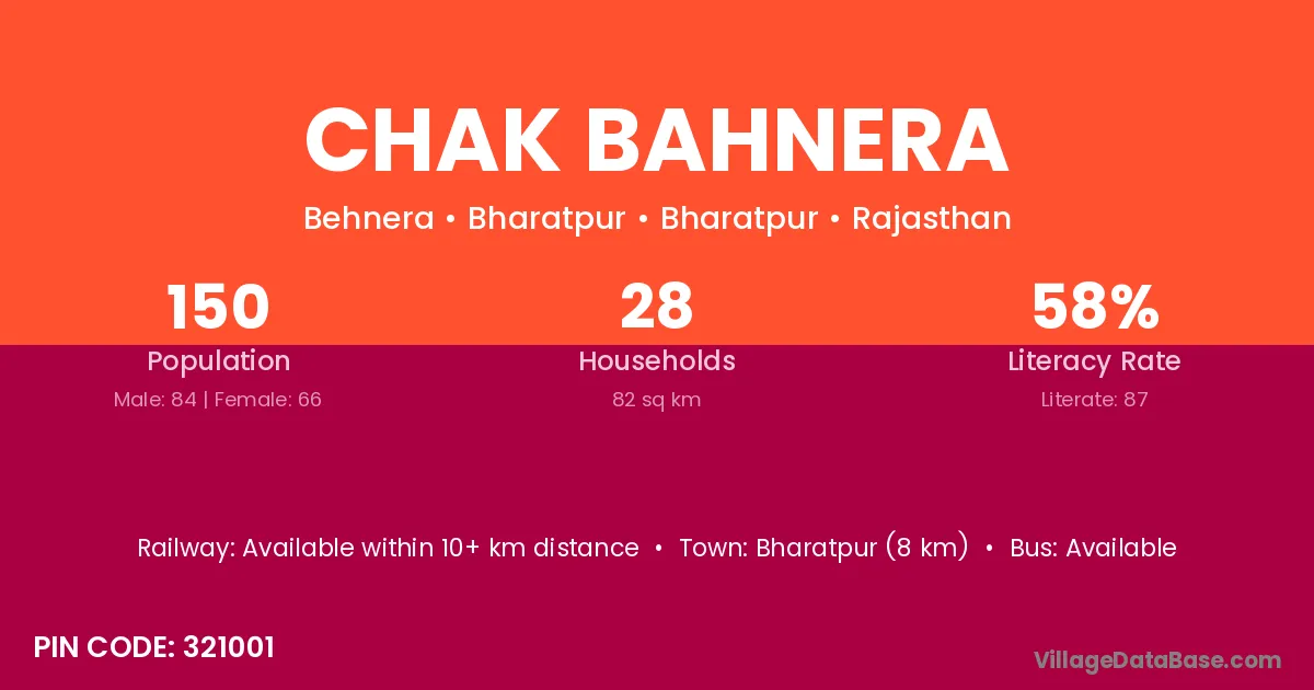 Bharatpur (8 km) is the nearest town to Chak Bahnera village for major economic activities and is located approximately 8 km away.