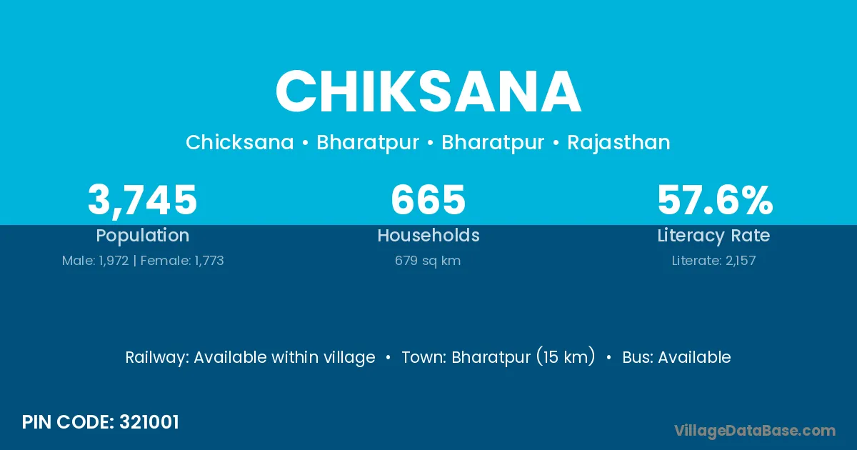Bharatpur (15 km) is the nearest town to Chiksana village for major economic activities and is located approximately 15 km away.