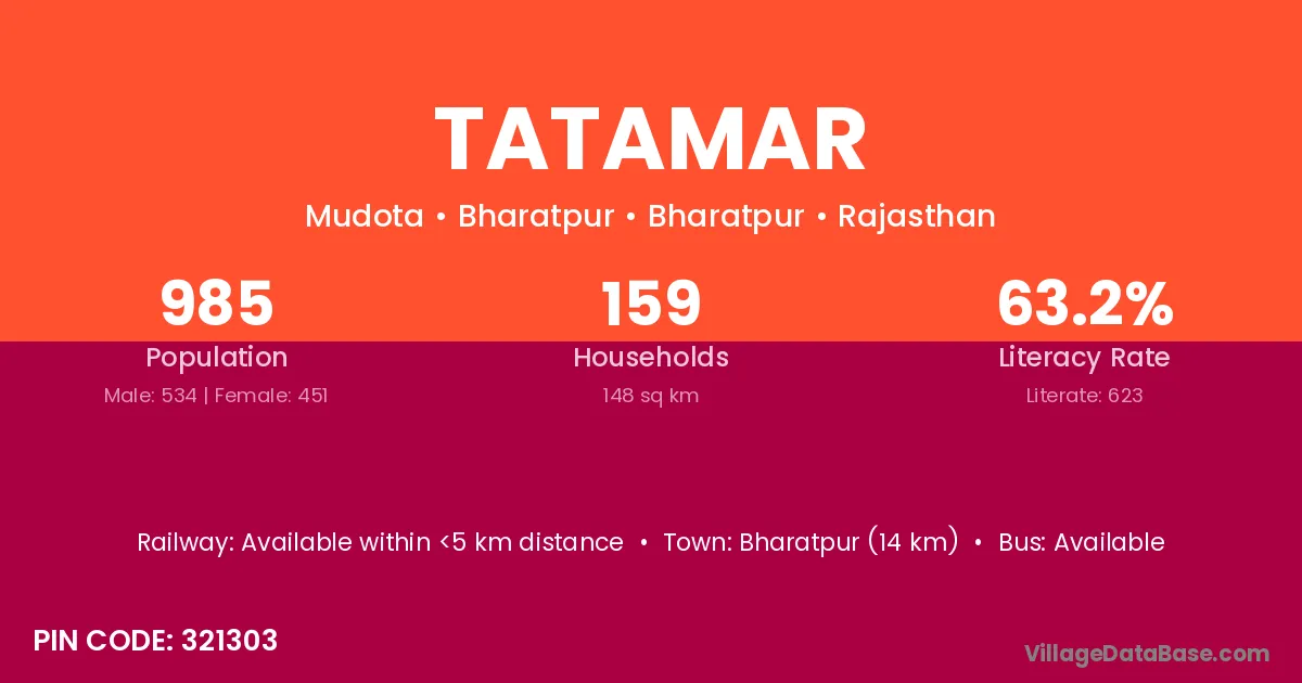Bharatpur (14 km) is the nearest town to Tatamar village for major economic activities and is located approximately 14 km away.