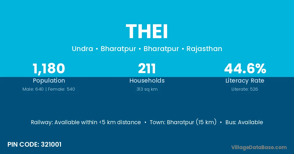 Bharatpur (15 km) is the nearest town to Thei village for major economic activities and is located approximately 15 km away.