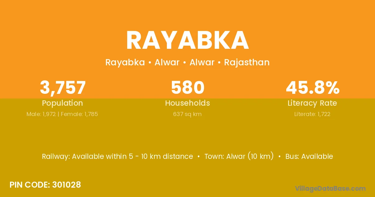 Deeg (14 km) is the nearest town to Rayabka village for major economic activities and is located approximately 14 km away.