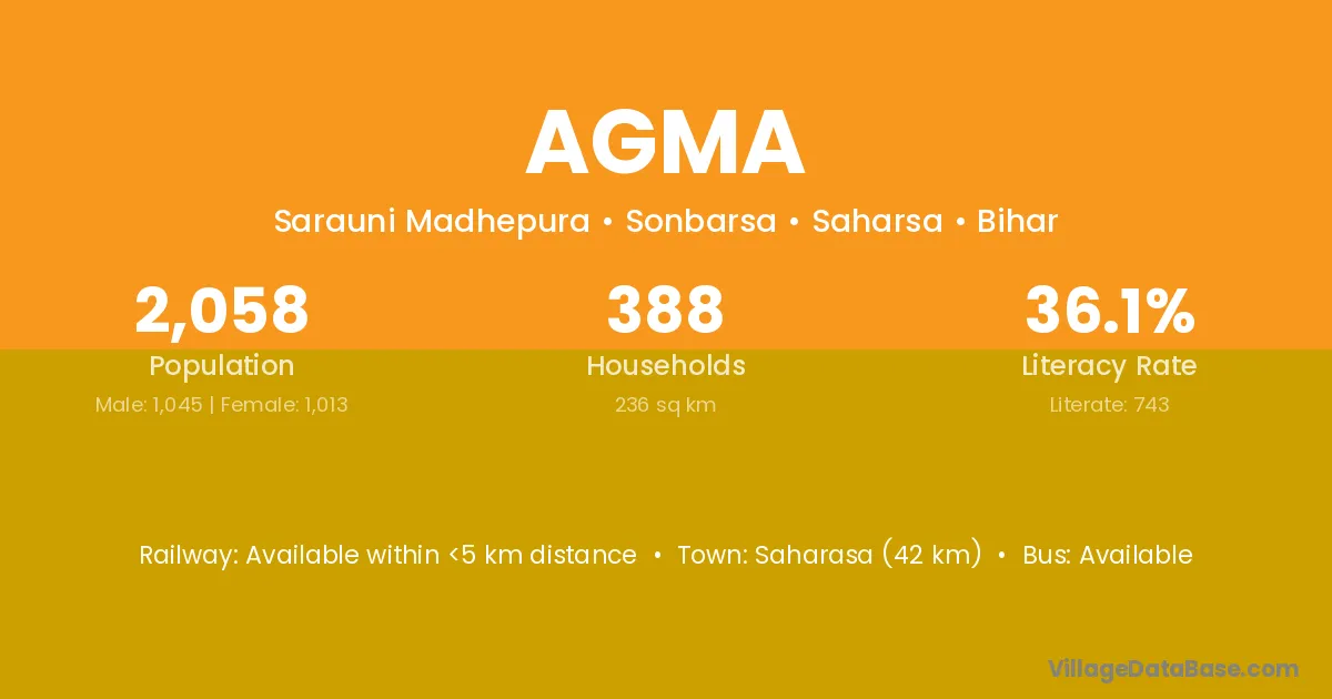 The population of Agma village is distributed between literate and illiterate residents as follows:
