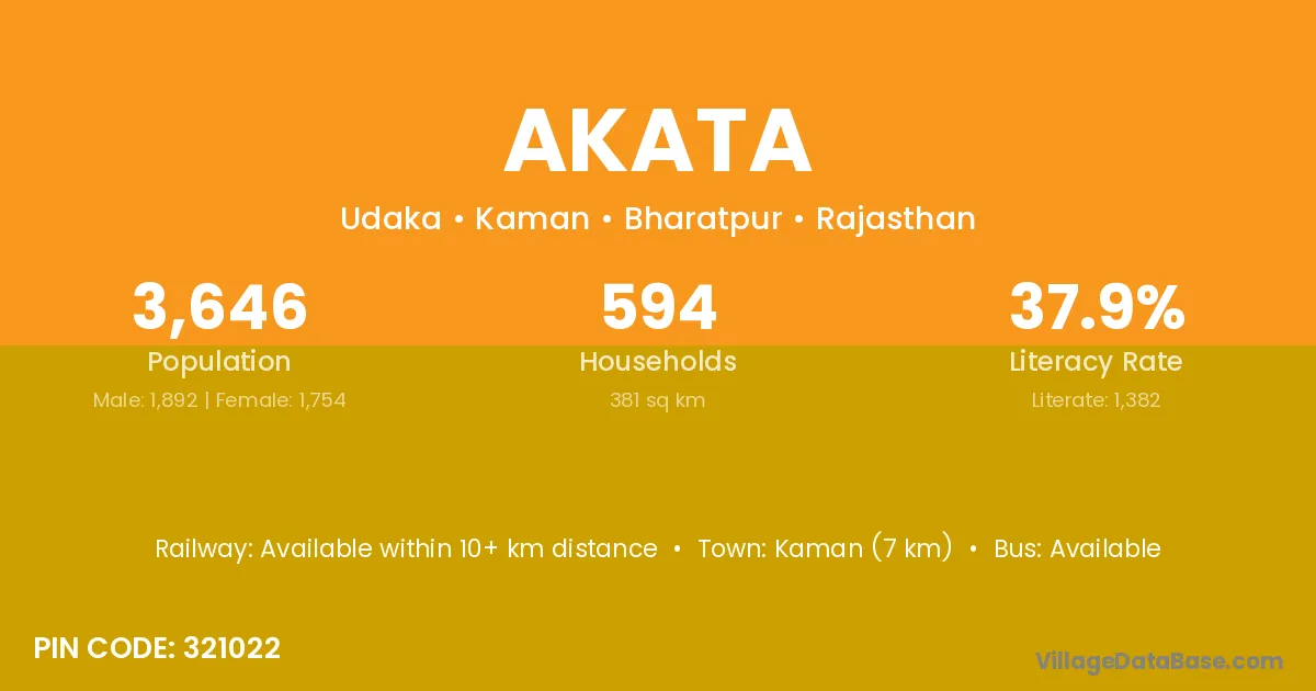 Akata village has a total population of 3,646 people, of which 1,892 are males and 1,754 are females.