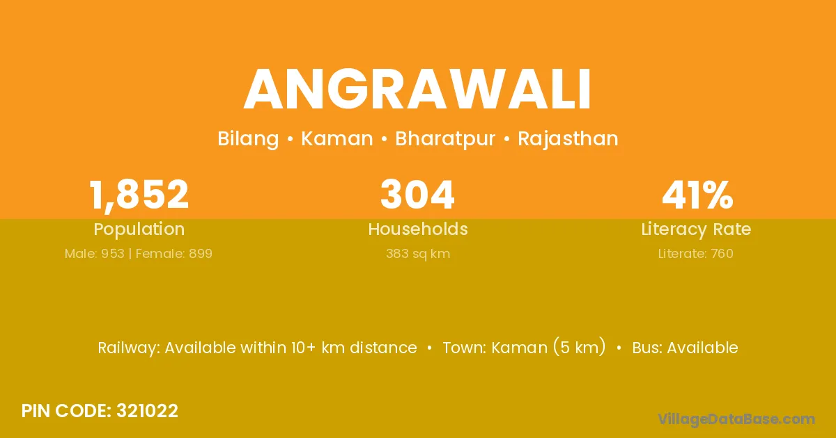 Kaman (5 km) is the nearest town to Angrawali village for major economic activities and is located approximately 5 km away.