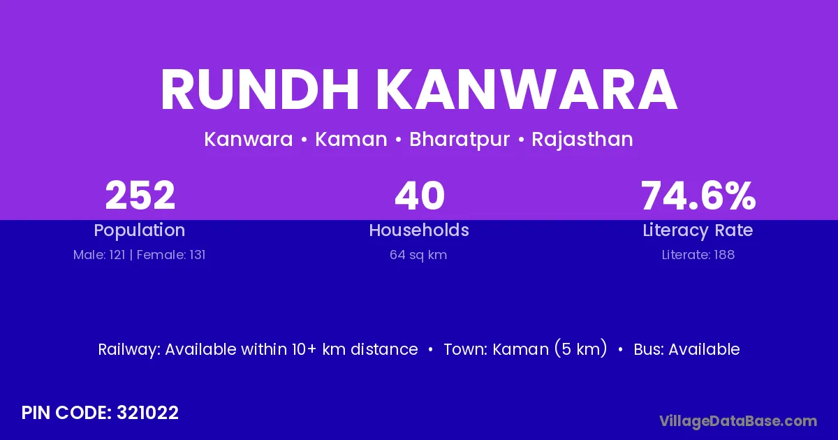 Rundh Kanwara village has a total population of 252 people, of which 121 are males and 131 are females.