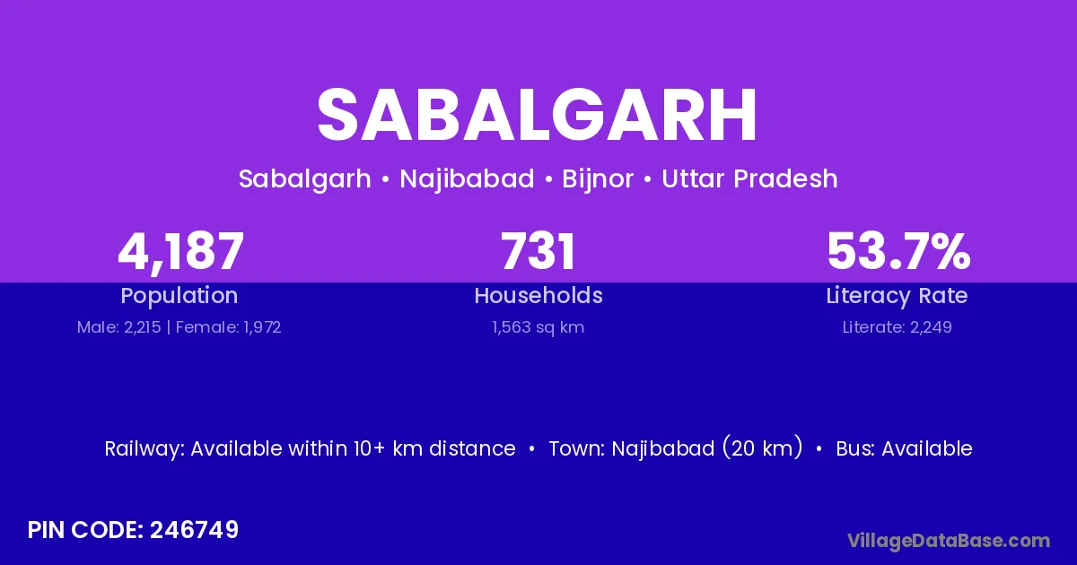 Kaman (10 km) is the nearest town to Sabalgarh village for major economic activities and is located approximately 10 km away.