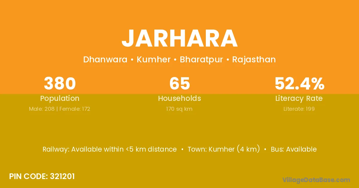 Kumher (4 km) is the nearest town to Jarhara village for major economic activities and is located approximately 4 km away.