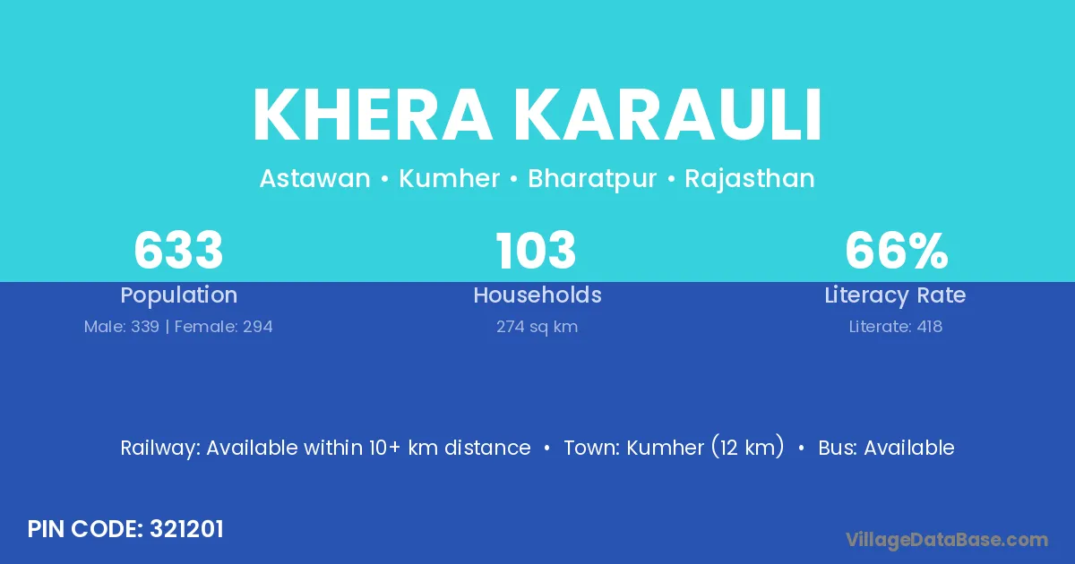 Khera Karauli village has a total population of 633 people, of which 339 are males and 294 are females.
