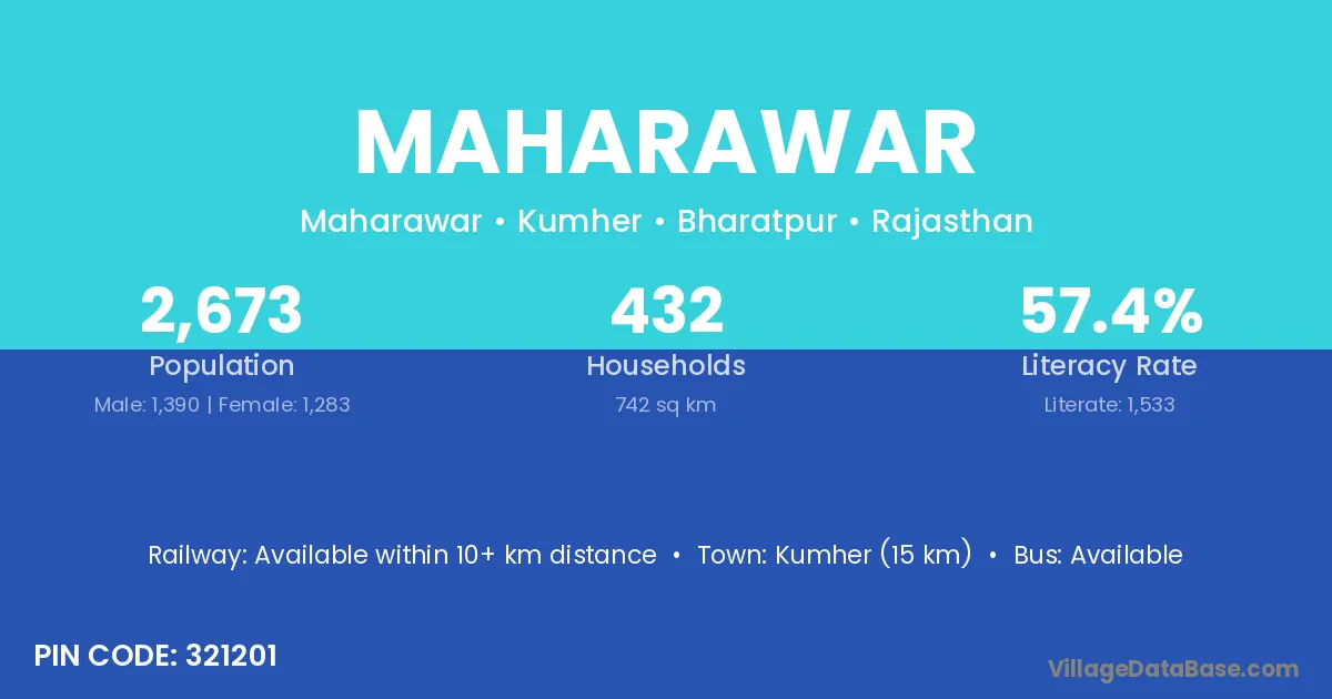 Kumher (15 km) is the nearest town to Maharawar village for major economic activities and is located approximately 15 km away.