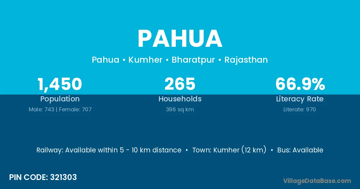 Kumher (12 km) is the nearest town to Pahua village for major economic activities and is located approximately 12 km away.