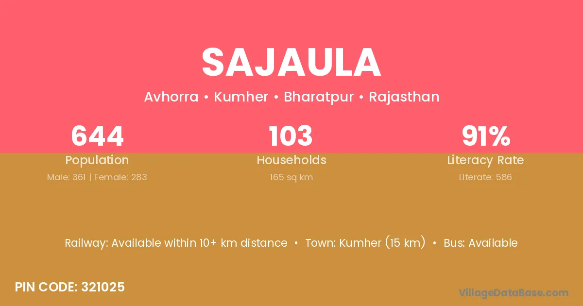 Kumher (15 km) is the nearest town to Sajaula village for major economic activities and is located approximately 15 km away.