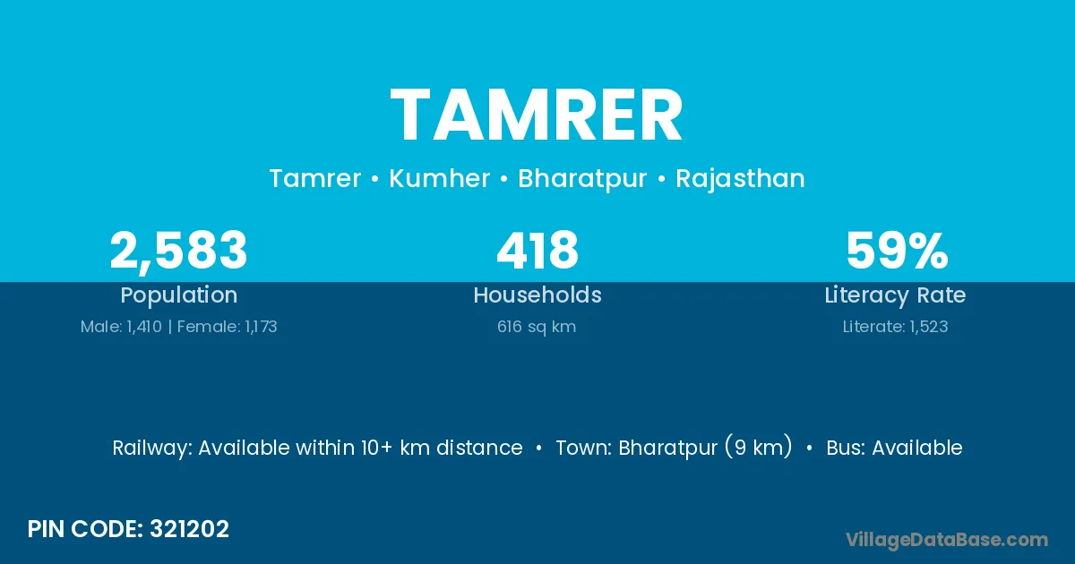 Bharatpur (9 km) is the nearest town to Tamrer village for major economic activities and is located approximately 9 km away.