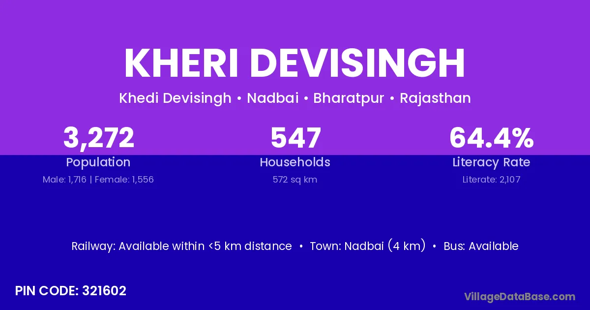 Nadbai (4 km) is the nearest town to Kheri Devisingh village for major economic activities and is located approximately 4 km away.