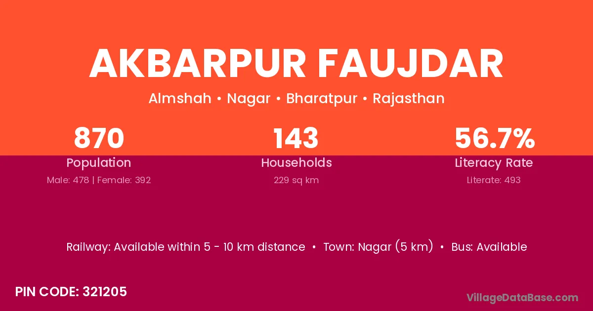 Nagar (5 km) is the nearest town to Akbarpur Faujdar village for major economic activities and is located approximately 5 km away.