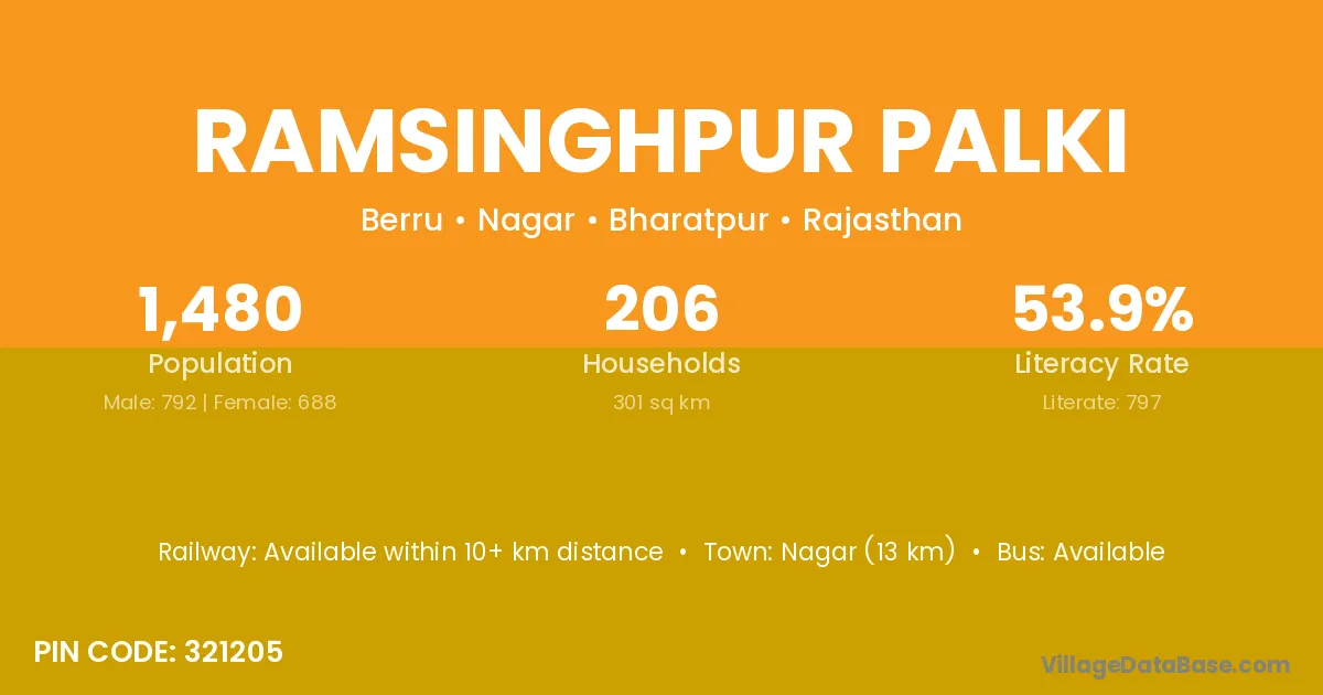 Ramsinghpur Palki village has a total population of 1,480 people, of which 792 are males and 688 are females.