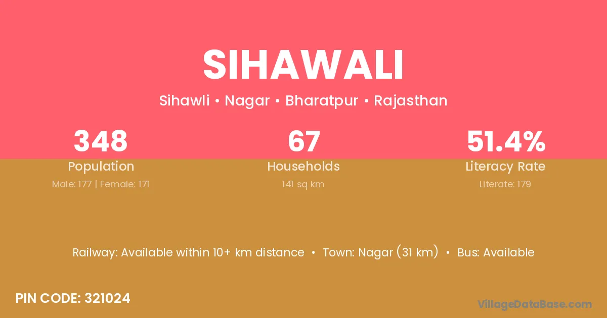 Nagar (31 km) is the nearest town to Sihawali village for major economic activities and is located approximately 31 km away.