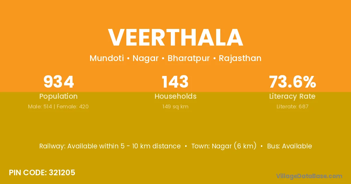 According to Census 2011 information, the village code of Veerthala village is 321205.