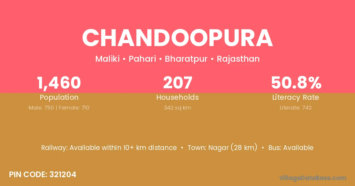 According to Census 2011 information, the village code of Chandoopura village is 321204.