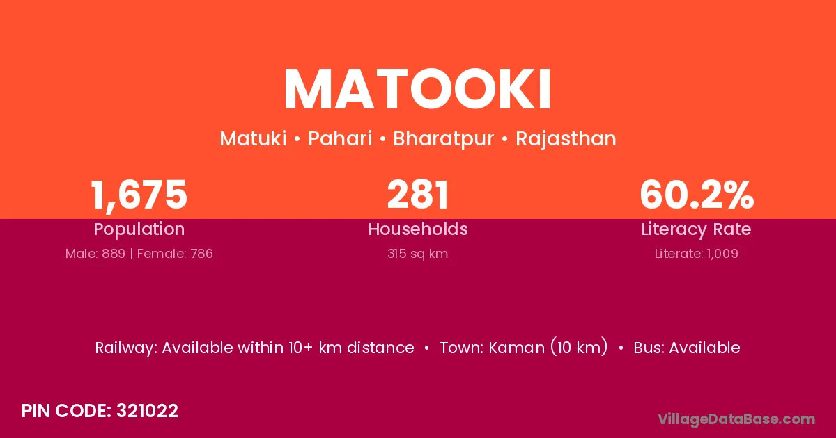 According to Census 2011 information, the village code of Matooki village is 321022.