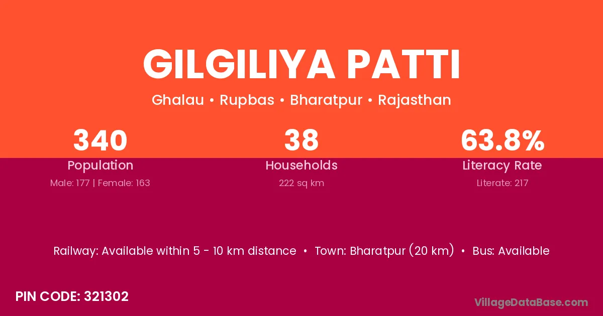 Gilgiliya Patti village has a total population of 340 people, of which 177 are males and 163 are females.
