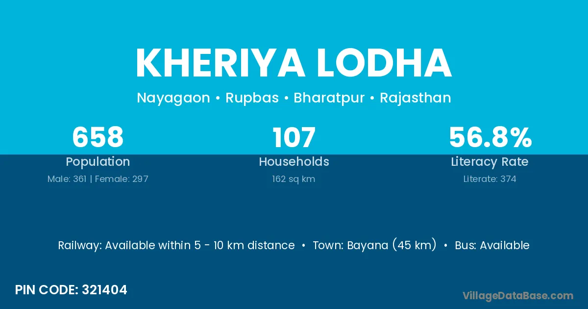 Bayana (45 km) is the nearest town to Kheriya Lodha village for major economic activities and is located approximately 45 km away.