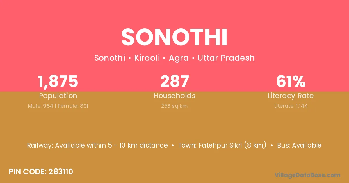 Bharatpur (25 km) is the nearest town to Sonothi village for major economic activities and is located approximately 25 km away.
