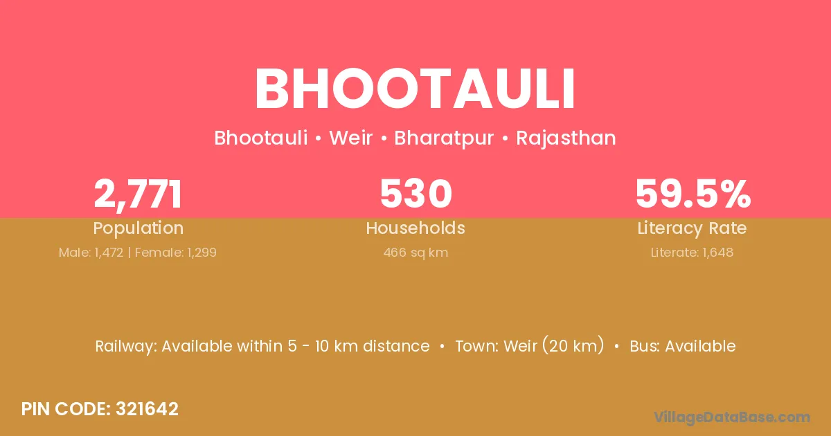 Weir (20 km) is the nearest town to Bhootauli village for major economic activities and is located approximately 20 km away.