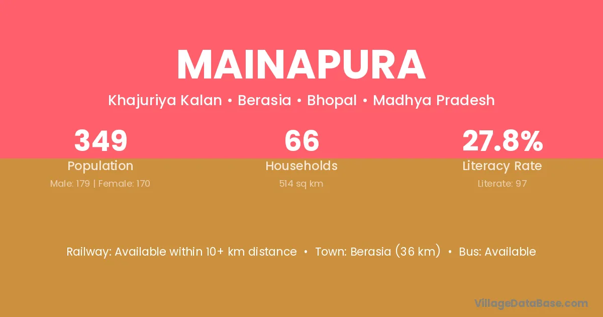 Bhusawar (14 km) is the nearest town to Mainapura village for major economic activities and is located approximately 14 km away.
