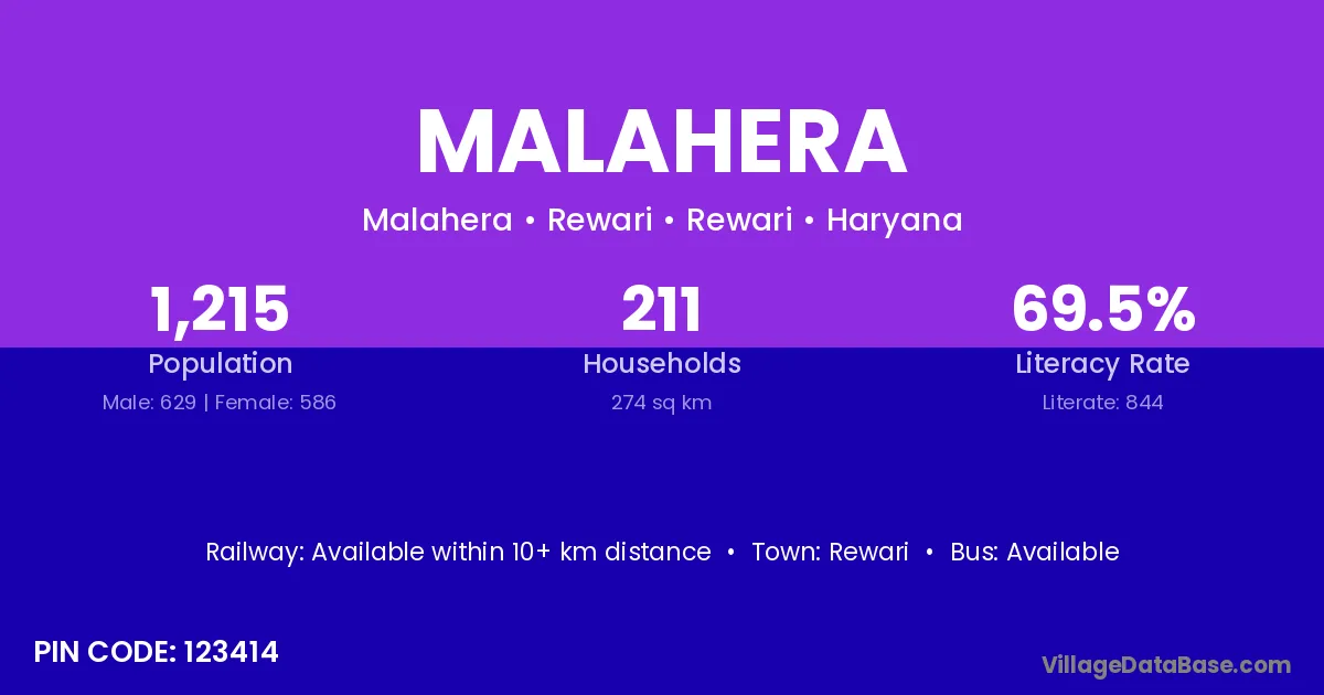 According to Census 2011 information, the village code of Malahera village is 321407.