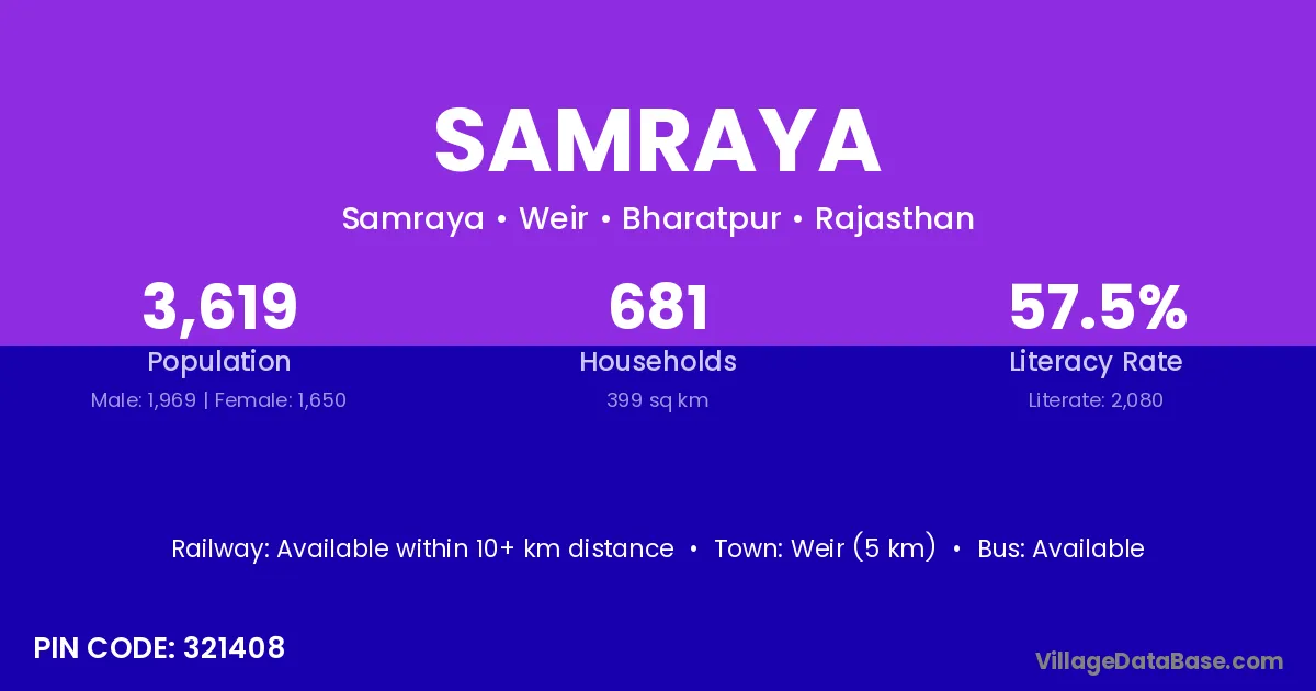 Weir (5 km) is the nearest town to Samraya village for major economic activities and is located approximately 5 km away.