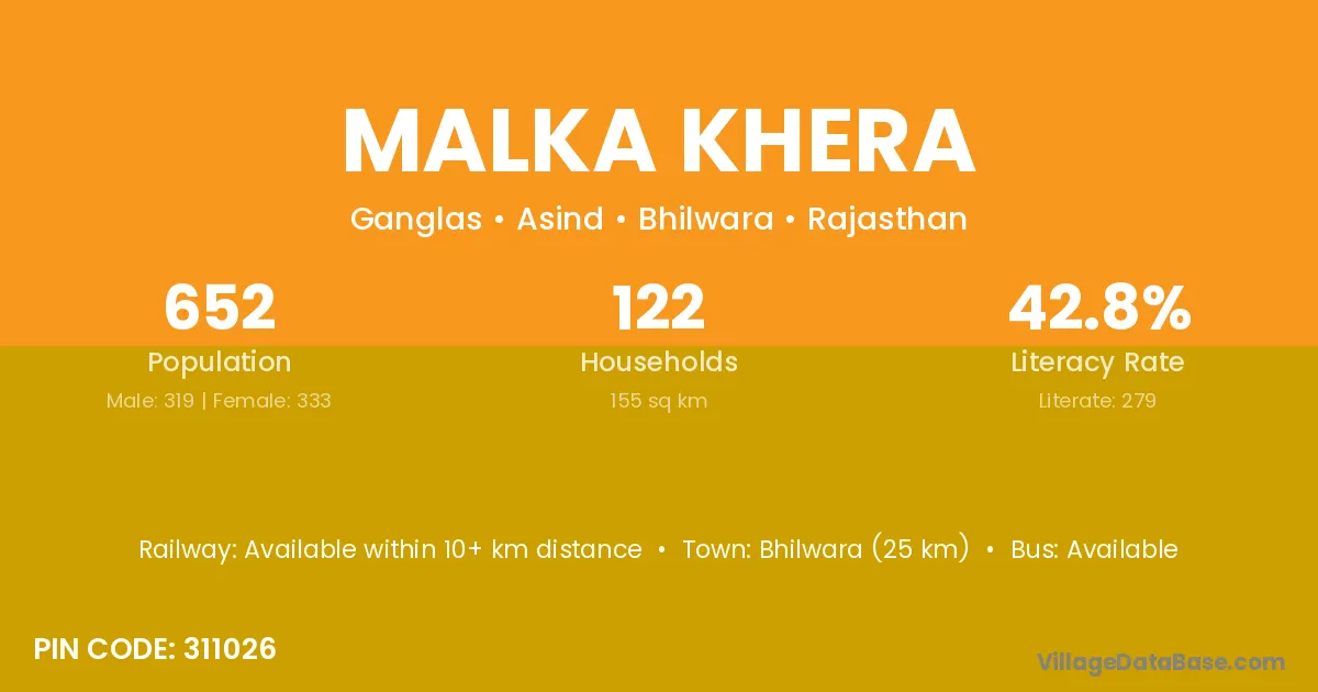 Bhilwara (25 km) is the nearest town to Malka Khera village for major economic activities and is located approximately 25 km away.