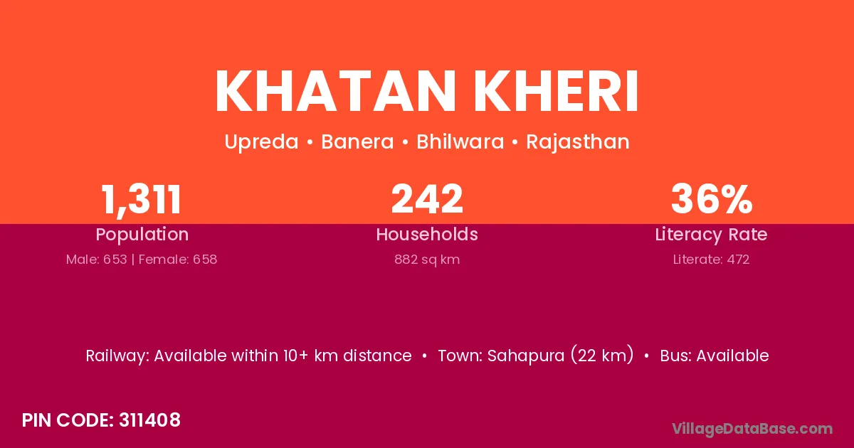Sahapura (22 km) is the nearest town to Khatan Kheri village for major economic activities and is located approximately 22 km away.