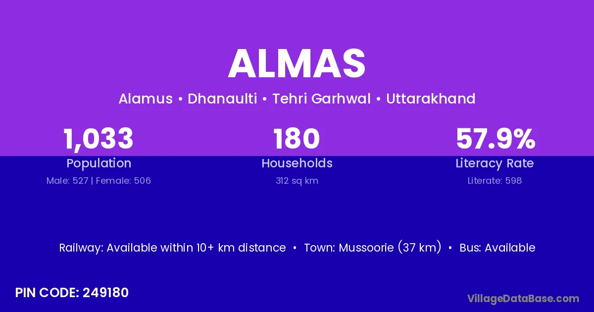 According to Census 2011 information, the village code of Almas village is 311026.