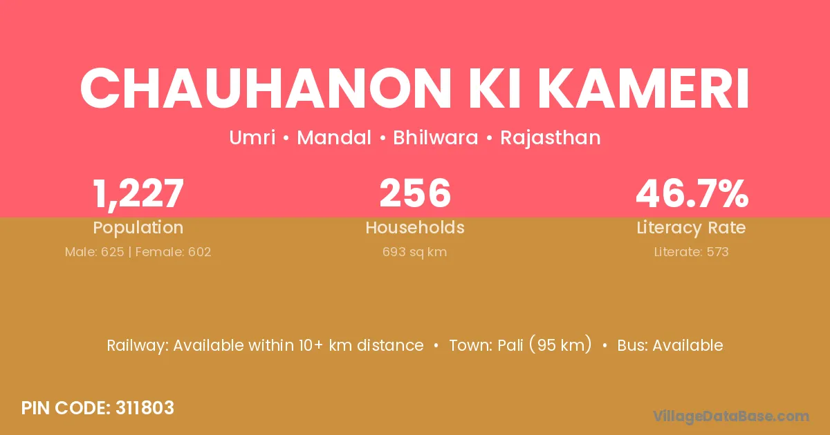 Chauhanon Ki Kameri village has a total population of 1,227 people, of which 625 are males and 602 are females.