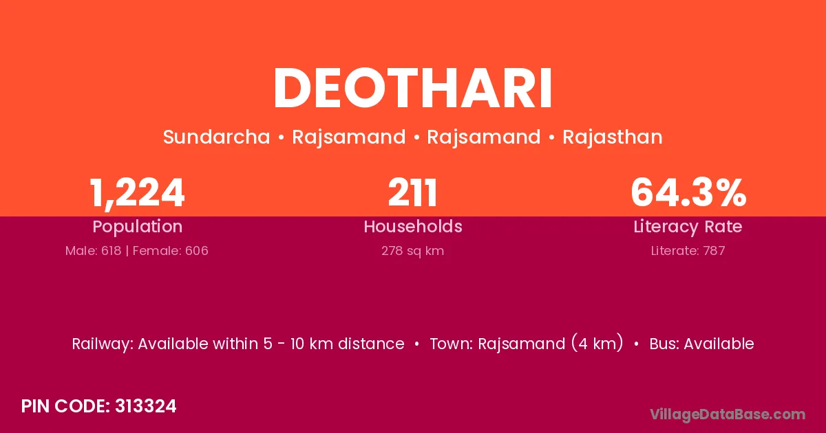 According to Census 2011 information, the village code of Deothari village is 311804.