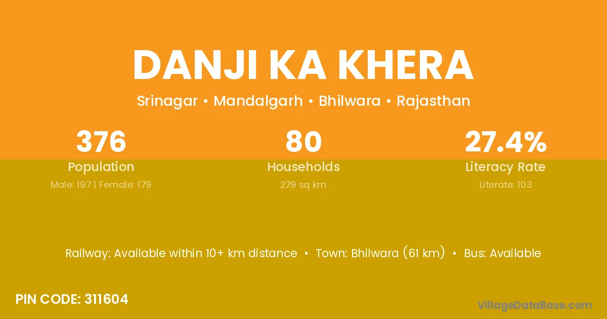 Danji Ka Khera village has a total population of 376 people, of which 197 are males and 179 are females.