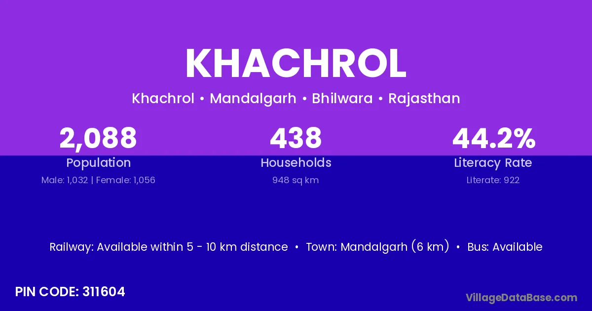 Mandalgarh (6 km) is the nearest town to Khachrol village for major economic activities and is located approximately 6 km away.