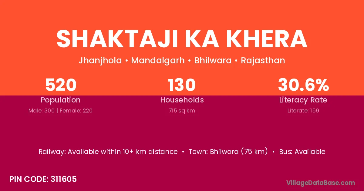 Shaktaji Ka Khera village has a total population of 520 people, of which 300 are males and 220 are females.