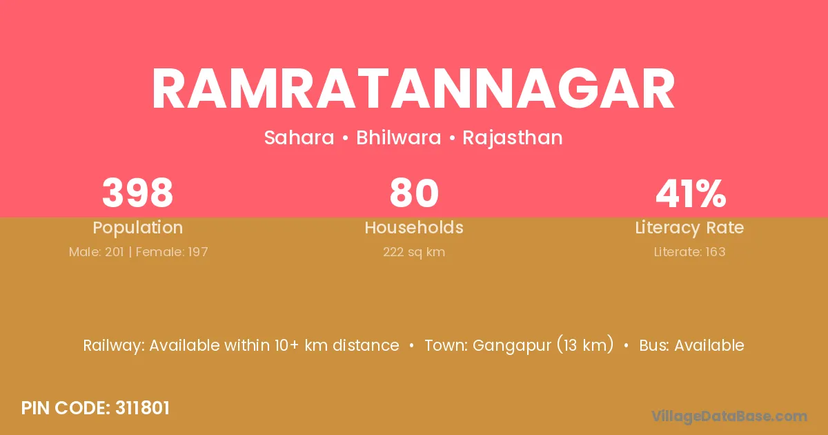 Ramratannagar village has a total population of 398 people, of which 201 are males and 197 are females.