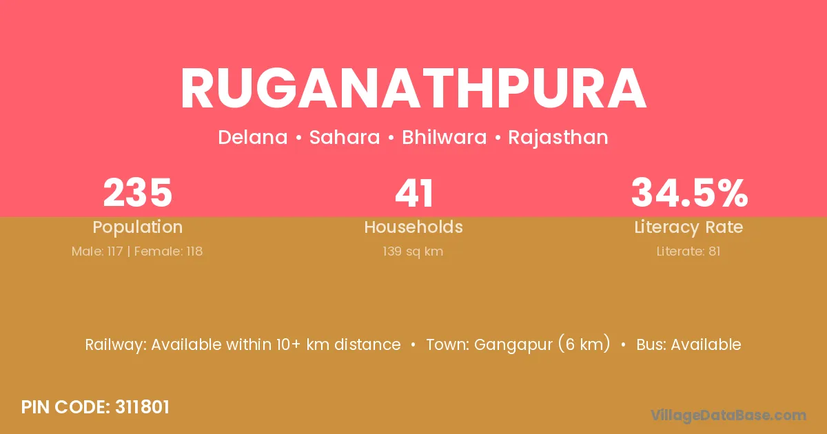 According to Census 2011 information, the village code of Ruganathpura village is 311801.