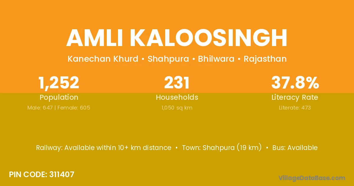 Shahpura (19 km) is the nearest town to Amli Kaloosingh village for major economic activities and is located approximately 19 km away.