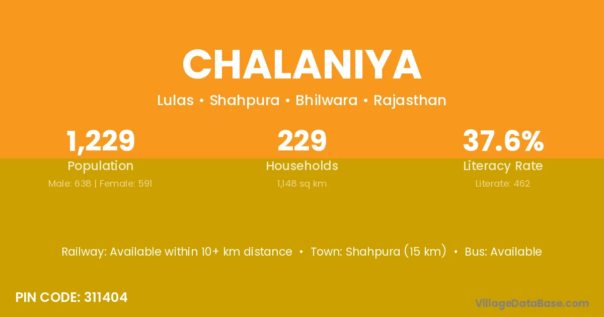 Shahpura (15 km) is the nearest town to Chalaniya village for major economic activities and is located approximately 15 km away.